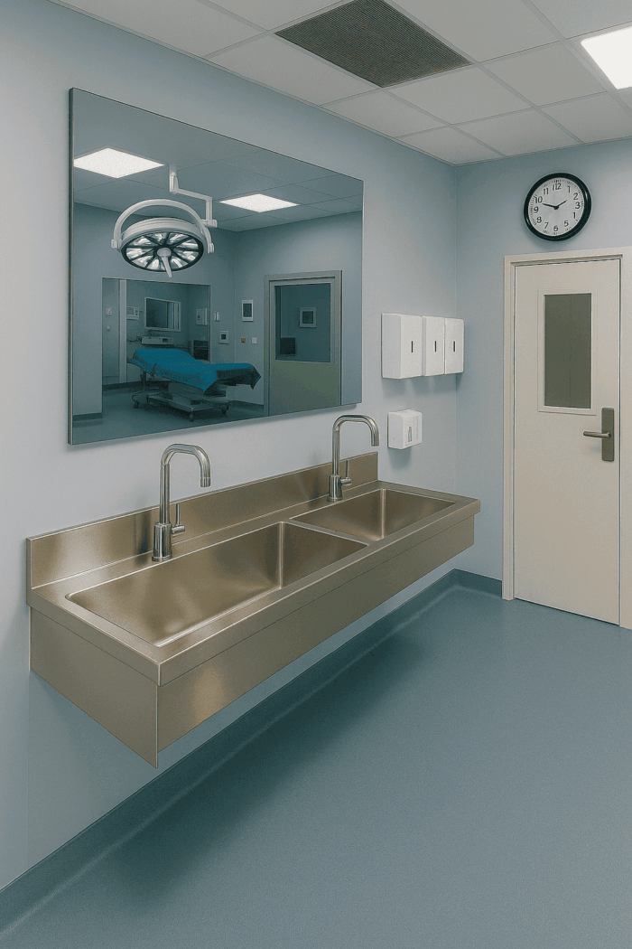 Dans un bloc opératoire, notamment dans la zone de lavage chirurgical, chaque surface doit être pensée pour limiter les risques infectieux.